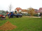 Teichbau mit bepflanzter Insel und Wasserfall