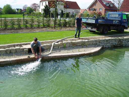 Bei Fischteichen ist auf ausreichende Tiefe zu achten, damit die Fische im Winter nicht einfrieren. Auch auf die Sicherheit ist zu achten, damit es nicht zu tragischen Unfällen, insbesondere mit kleinen Kindern, kommen kann.