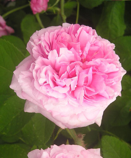 Züchter: Moreau-Robert 1860 Blüte: kräftig rosa, Rand etwas heller, dicht gefüllt, sehr starker Duft, äußere Petalen zurückgerollt, öfter blühend Pflanze: Wuchs kräftig, Laub dunkelgrün spitz Höhe: ca. 120 cm