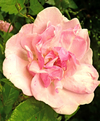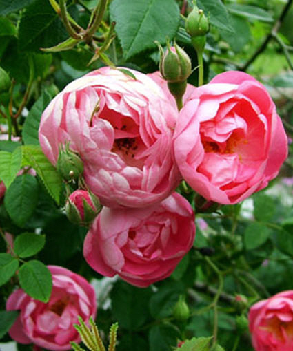 Züchter: W. Kordes`Söhne 1936 Blüte: helles Purpurrosa, klein, ballförmig, gefüllt, duftet leicht, einmal blühend, Pflanze: buschig, sehr dünne Blätter, Höhe: ca. 250 – 300 cm
