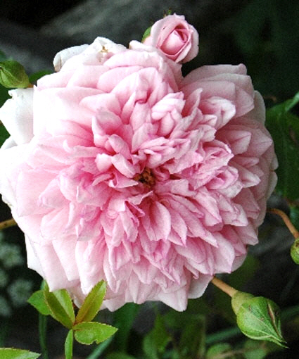 Züchter: Jacques, Frankreich 1828 Blüte: cremeweiß mit zartrose, pomponartig, gefüllt, einmal blühend, starke Nachblühte, süßer Duft Pflanze: starkwüchsig, überhängend Höhe: ca. 500 – 600cm