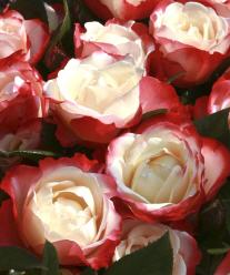Züchter: Rosen Tantau 1995 Blüte: cremeweiss-kirschfarbig, ballförmige Blüte gefüllt, öfter blühend Pflanze: beim Austrieb rötliches Blatt Höhe: ca. 70-120 cm 5 Pfl./qm