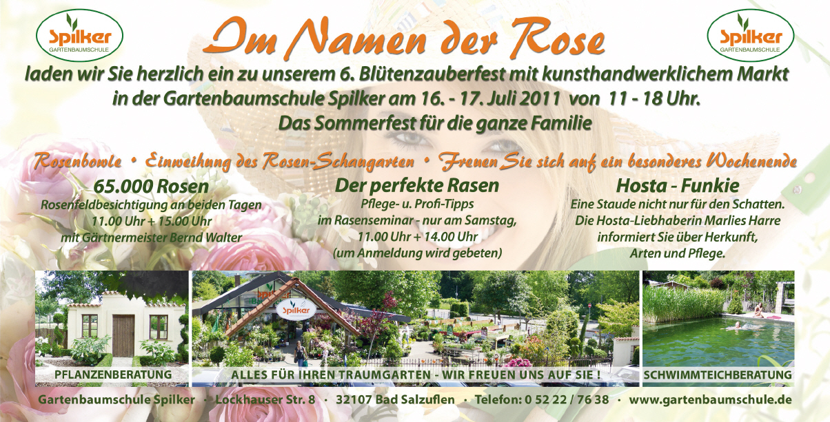 Am 16. und 17 Juli 2011 veranstaltete die Gartenbaumschule Spilker wieder sein Blütenzauberfest für alle Garten- und Rosenfreunde und bot damit allen Besuchern ein besonderes Wochenende.