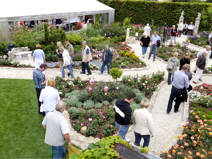 Gärtnermeister Bernd Walter bei der Rosenfeldbesichtigung und unserer neuer Rosenschaugarten, der auf diesem Fest eingeweiht wurde.